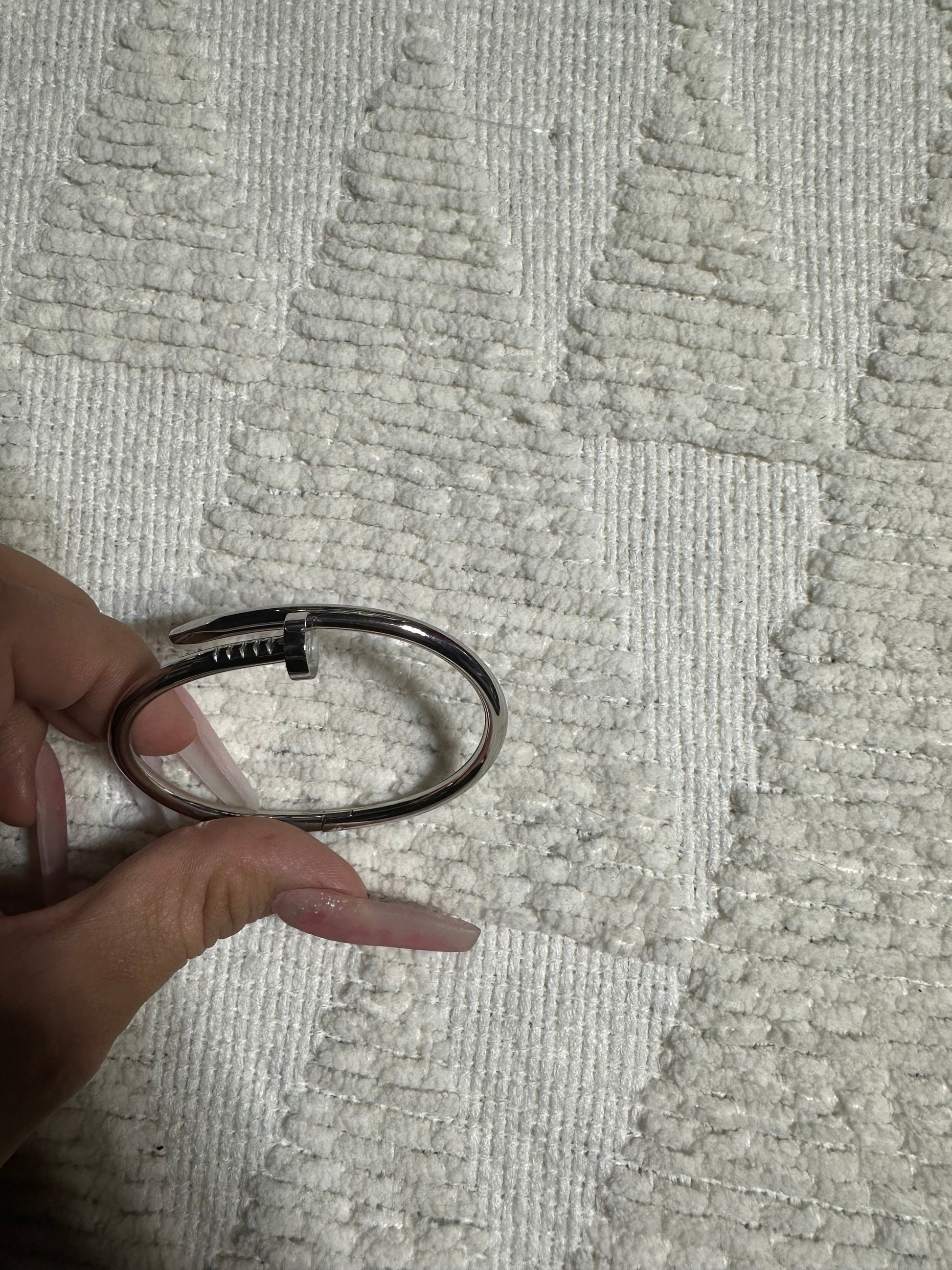 Nail bracelet has no stones as shown in single photo